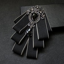 Bowknot Rhinestone Fashion Ribbon Bow Brooch Pre-Tied Bow tie for Men Black