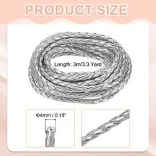 Braided Leather Cords, 3.3 Yard Strap with Cord Lock, 4mm Dia, Silver
