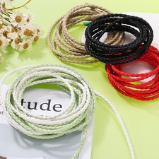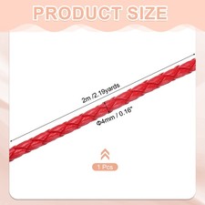 Braided Leather Cords, Round Leather Strap 4mm Dia. 2.20 Yards, Bright Red