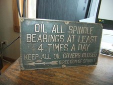 brass bronze antique machine plaque OIL ALL SPINDDLE BEARINGS 4 TIMES A DAY W/AR