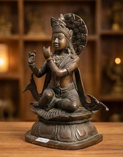 Brass Lord Krishna Statue Handcrafted Hindu Deity Murti Spiritual Decor Gift 2KG
