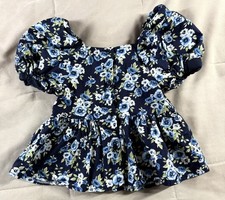 Btween Girls Cotton Puff Sleeve Peplum Blouse Top Navy Blue Floral Size 7
