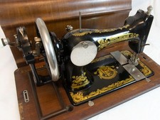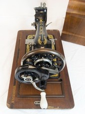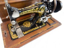 c. 1923 Frister & Rossmann Hand Crank Sewing Machine Sphynx Decal Coffin Case