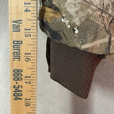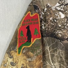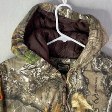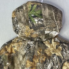 Cabelas Youth Size L Camo Hooded Jacket Shell Realtree Heavy w Patches