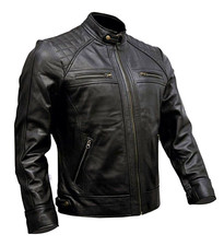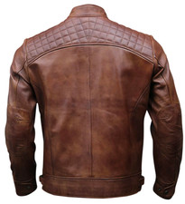 Café Racer Men Leather Jacket Black Brown Biker Genuine Sheep skin Leather