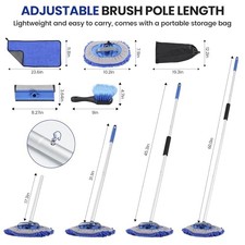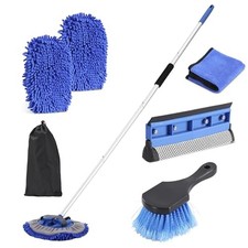 Car Wash Brush with Long Handle, 60” Car Wash Mop, 7Pcs Chenille Blue