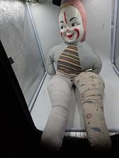 Carnival Clown Doll, Celluloid Face Collectible 29” Rare 1950’s MCM Unique