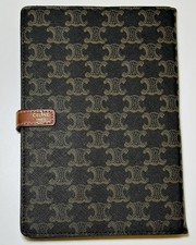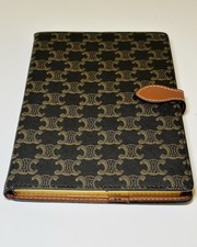 CELINE Triomphe Canvas Notebook Agenda Cover Brown Leather Vintage Style