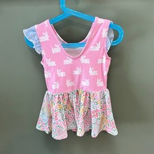 Cheeky Plum Clothing Girls 5T Pink Bunny Floral Ruffle Sleeve Dress