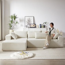 Chenille L-Shaped Sectional Sofa, 108″ Modular Sofa Set w/ 6 Pillows