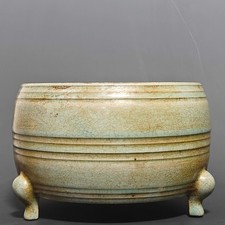 China Old Antique Porcelain Song Ru Kiln Song Hui Zong Mark Three Foot Pot
