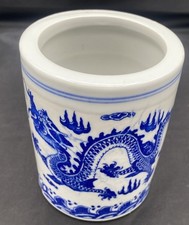 Chinese Blue&white Porcelain Handpainted Dragon Pattern Brush Pot