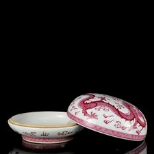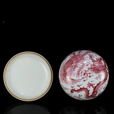 Chinese Gem Red Glaze Porcelain HandPainted Dragon and Phoenix Pattern Cover Box