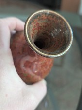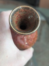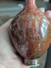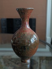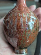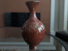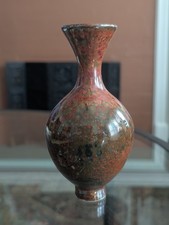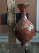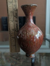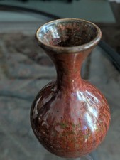 Chinese Maroon Speckled Peach Bloom Vase Flambe Red Glaze Mottled Green Vtg Art