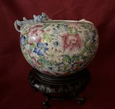 CHINESE MILLE FLEUR DRAGON BAT ENCRUSTED GLOBULAR VASE WATER POT LATE QING – ROC