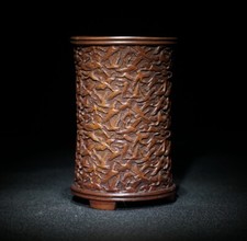 Chinese Natural Boxwood Handcarved Exquisite Crane Brush Pot 17849
