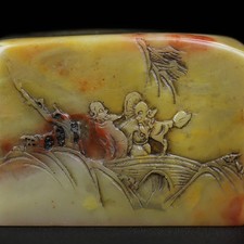 Chinese Natural Shoushan Stone Hand-carved Exquisite Landscape Figure Seal 13024