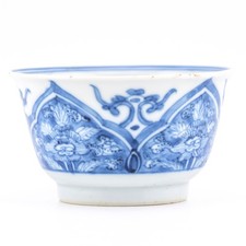 Chinese Porcelain Cup Blue White Lotus Chrysanthemum Qing Kangxi Mark Period 18t
