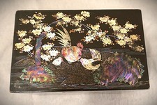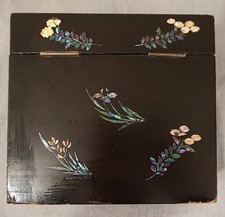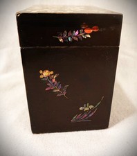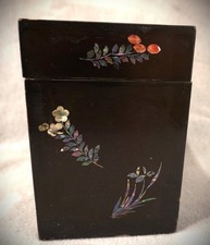 Chinese tea caddie black lacquered wood with Mother Pearl inlays