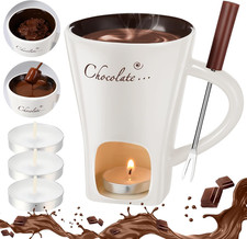 Chocolate Fondue Mug with Fork and Candle Sweet Ceramic Personal Chocolate Melti