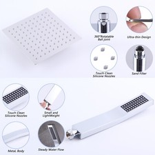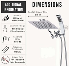 Chrome 8 In All Metal Rainfall Shower Head With Handheld Combo Extension Arm
