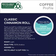 Cinnabon. Classic Cinnamon Roll Coffee, Keurig K-Cup Pods, Light Roast, 96 Count