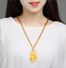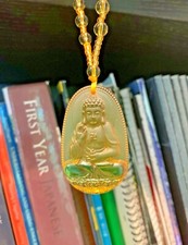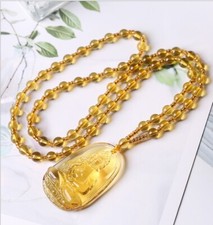 Citrine Guardian Buddha Pendant Amilet / FengShui Wealth Fortune Necklace