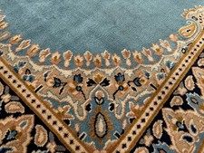 CLEAN VINTAGE KESHAN RUG HAND MADE PERSIAN BLUE WOOL CARPET CLEAN 6’9″ x 3’9″