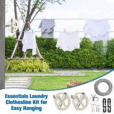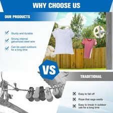 Clothes Line Outdoors Kit with 150.9FT Wire Rope PVC Coating 5inch Clotheslin…