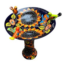 Cobalt Talavera Bird Bath | Handcrafted Sunflower Design
