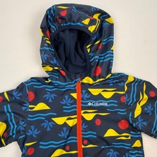 Columbia Kids 4T Windbreaker Jacket Hooded Navy Blue Tropical Print Full Zip