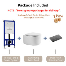 Compact Wall Mount Toilet Combo Set, Toilet Bowl with Tank Carrier, Dual Flush