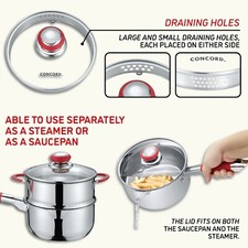 CONCORD Simple Pour Stainless Steel Saucepan with Steamer Tier