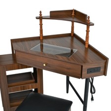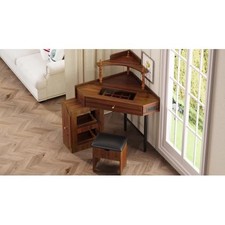 Corner Vanity Desk Set +Storage Cushioned Stool Triangle Makeup Desk w/Drawer
