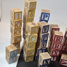 Craft Lot 60 Piece Childrens Wood Blocks Multicolor Alphabet #s Pictures READ