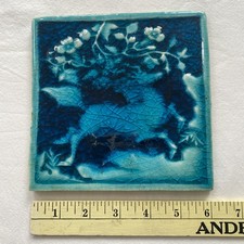 Craftsman Thick Antique Tile Aquamarine Blue Deer Flowers 6 X 6, 1/2” Thick