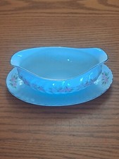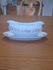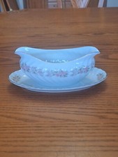 Dansico Vintage Porcelain China Rose Pattern & Platinum Gravy Boat Underplate