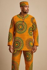 Dashiki and Kufi set for men African Fabric Orange Green and Black 100% Cotton