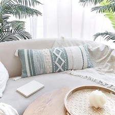 Decorative Boho Lumbar Pillow Cover 14×36 – Beautiful Throw Pillow with Sage
