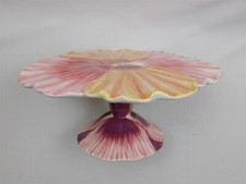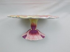 Department 56 Majolica Pink Orange Pansy Cake Stand Platter 11.5″ NIB