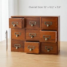 Desk Drawer Organizer, Wooden Vintage Apothecary Cabinet with 9 09 Brown