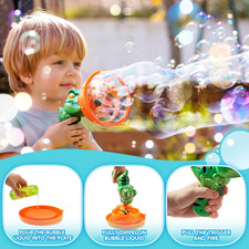 Dinosaur Bubble Gun with Solution, Outdoor Bubble Machine Toy for Kids & Parties