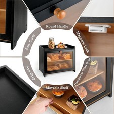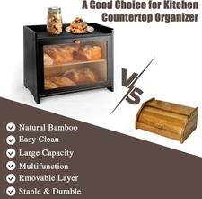 Double Layer Bamboo Bread Box W/ Acrylic Window Bread Holder,Kitchen Countertop