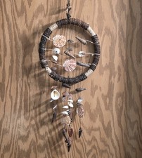 Dreamcatcher Windchime Made w/ Real Seashells Bamboo Rope 10″ Diam. 29″ Long