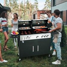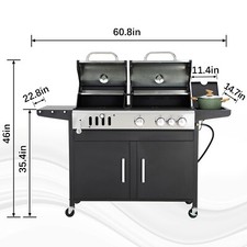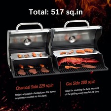 Dual Fuel BBQ Grill Propane Gas & Charcoal Grill with Side Burner Outdoor Black