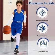 Dyrfolm 4 Pairs Kids Leg Sleeves Compression and Arm Sleeves,Youth /, Large