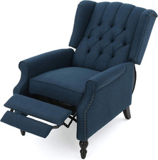 Earlean Fabric Recliner (Set of 2), Navy Blue, Dark Brown
