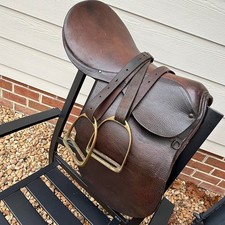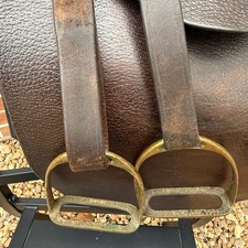 Early 20th Century English Leather Saddle with Brass Stirrups