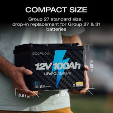 EcoFlow 12V 100Ah LiFePO4 Battery BMS Deep Cycle For RV/Trolling Motor/Off Grid