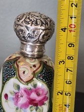 EDWARDIAN STERLING SILVER REPOUSSE TOPPED PORCELAIN SCENT BOTTLE Birmingham 1906